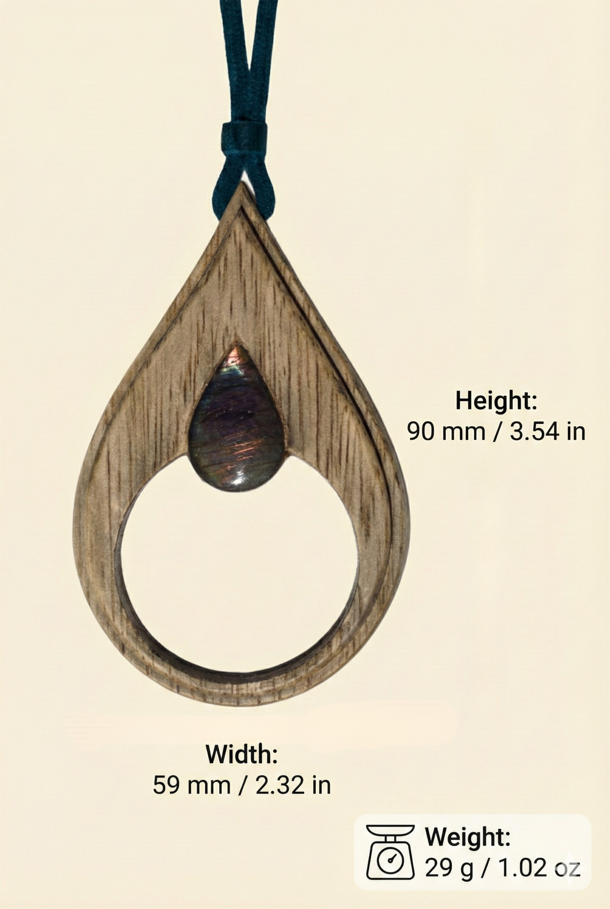 The Stone (Labradorite): At the heart of the design sits a genuine Labradorite gemstone. Known as the "Stone of Transformation," Labradorite is believed to banish fears and insecurities while strengthening faith in the self. Its iridescent flashes of blue and green (labradorescence) are said to protect the aura and enhance intuition.